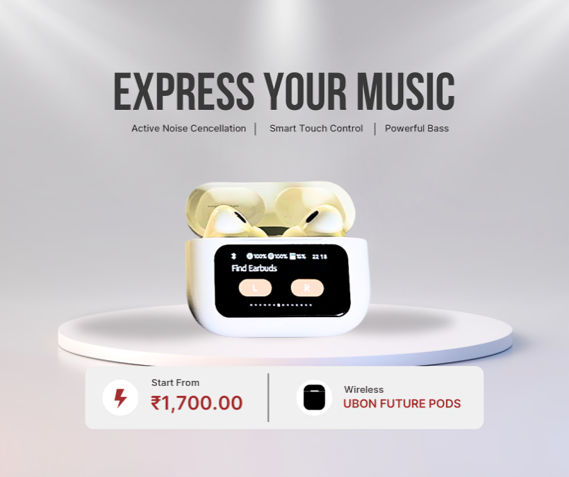 Led UltraPods | Wireless Bluetooth Earbuds with Digital Display, Transparent Design