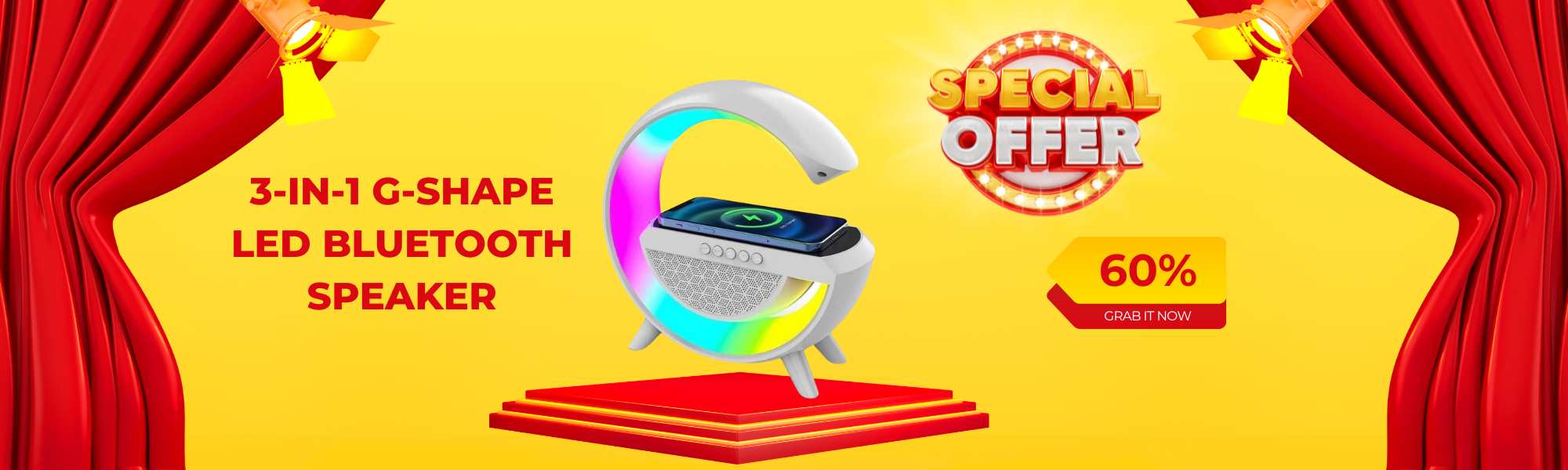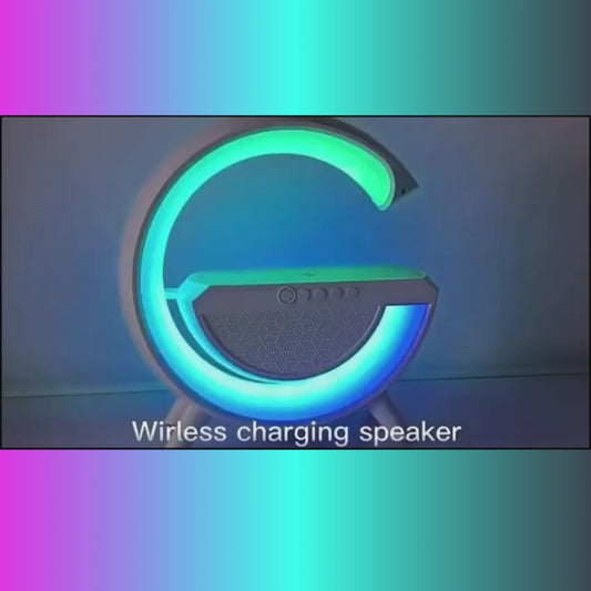 3 in 1 Multifunction G-Shape LED Bluetooth Speaker with Wireless Fast Charging | RGB Light Table Lamp Ideal for Home Decoration, Bedroom and Gaming Room