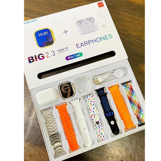 Ultra MAX Suit Smartwatch & AirPods Pro Bundle with Transparent Screen Guard and 7 Straps | Bluetooth Calling Smartwatch